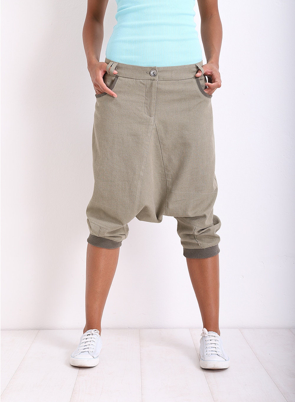 Drop Crotch Pants, Linen Harem Pants, Baggy Pants, Aladdin Pants, Summer Pants With Pockets by Friends Fashion