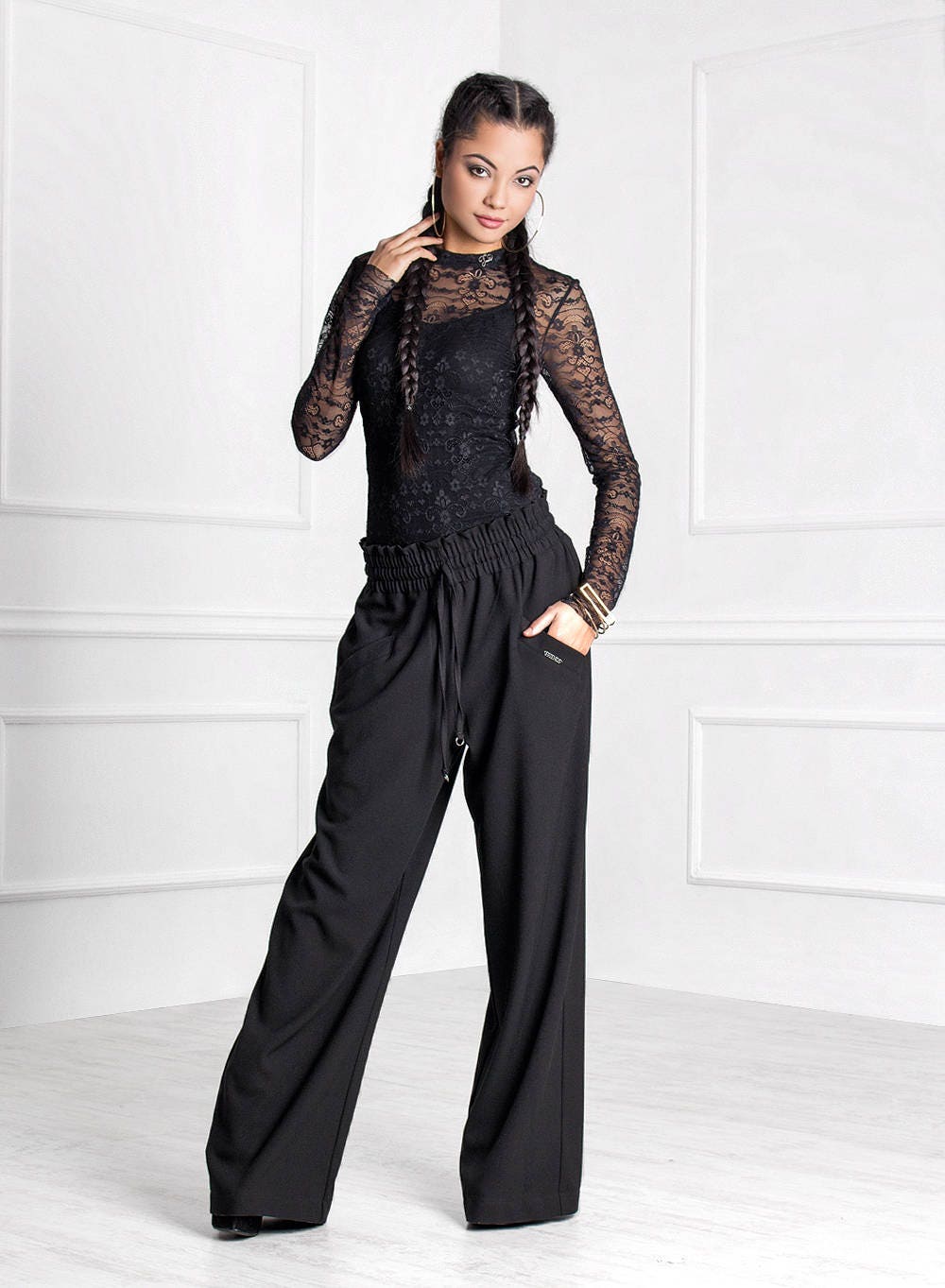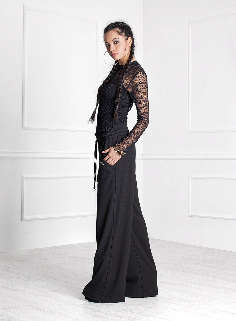 Extra Long Palazzo Pants, Woman Extravagant Pants, Costume Black Pants, Wide Leg Trousers, Friends Fashion