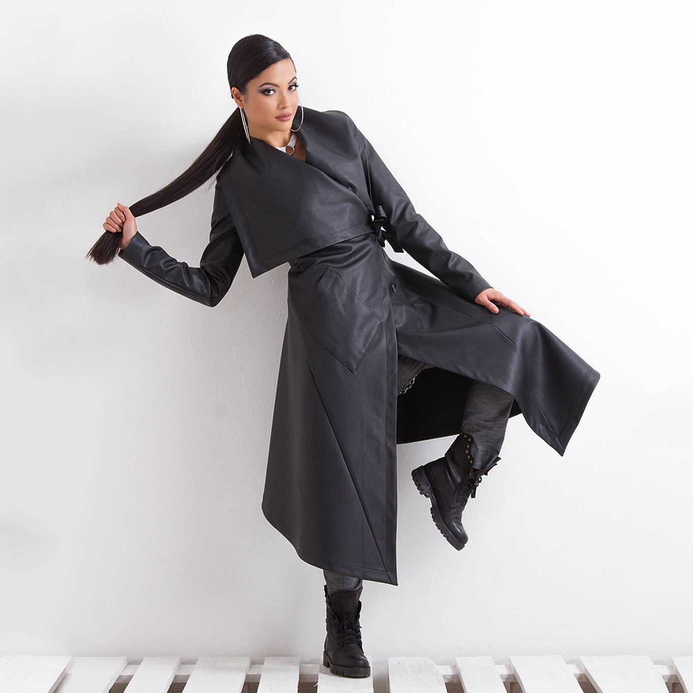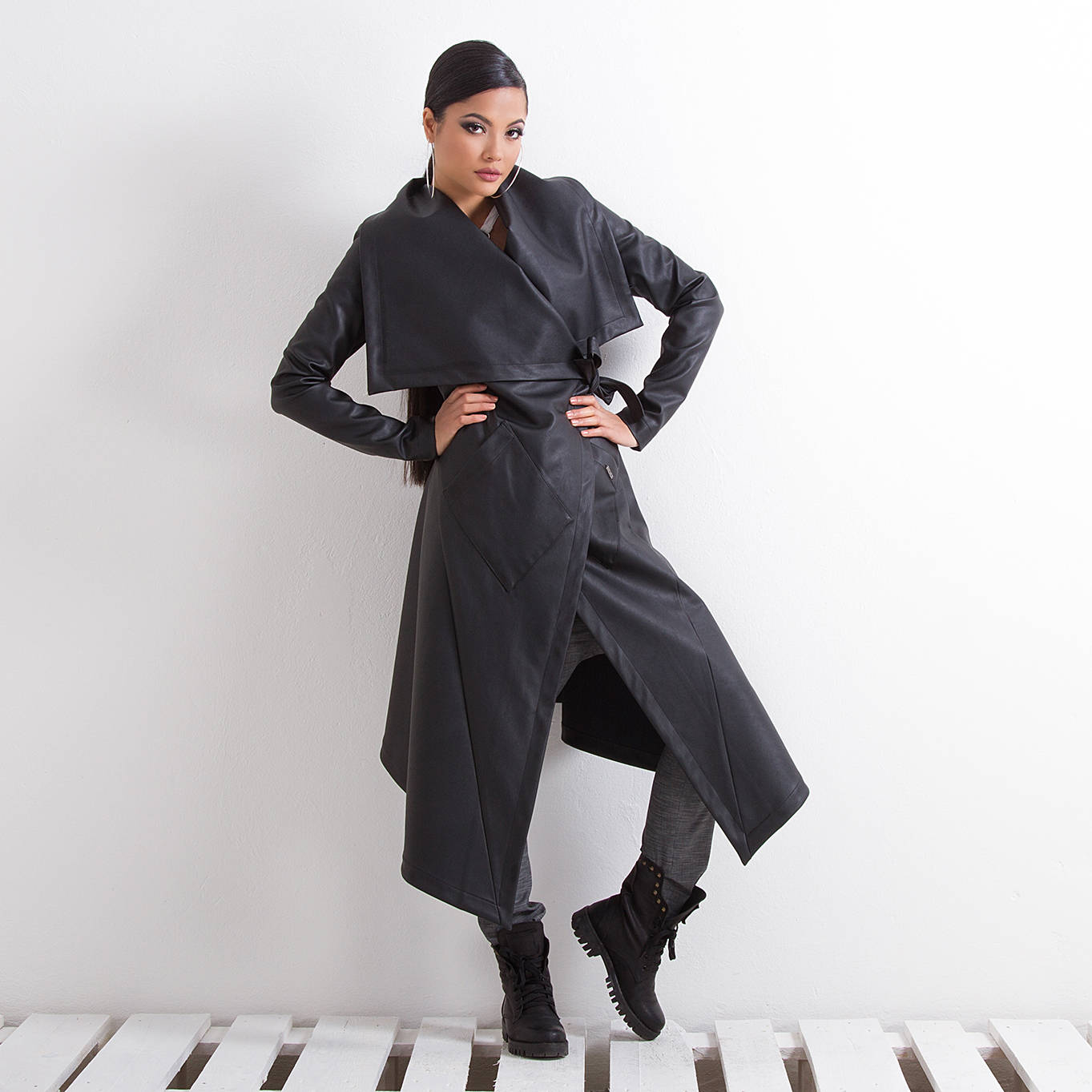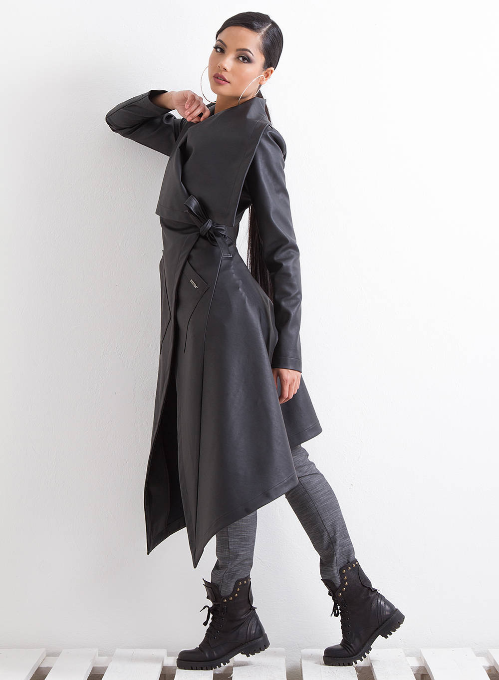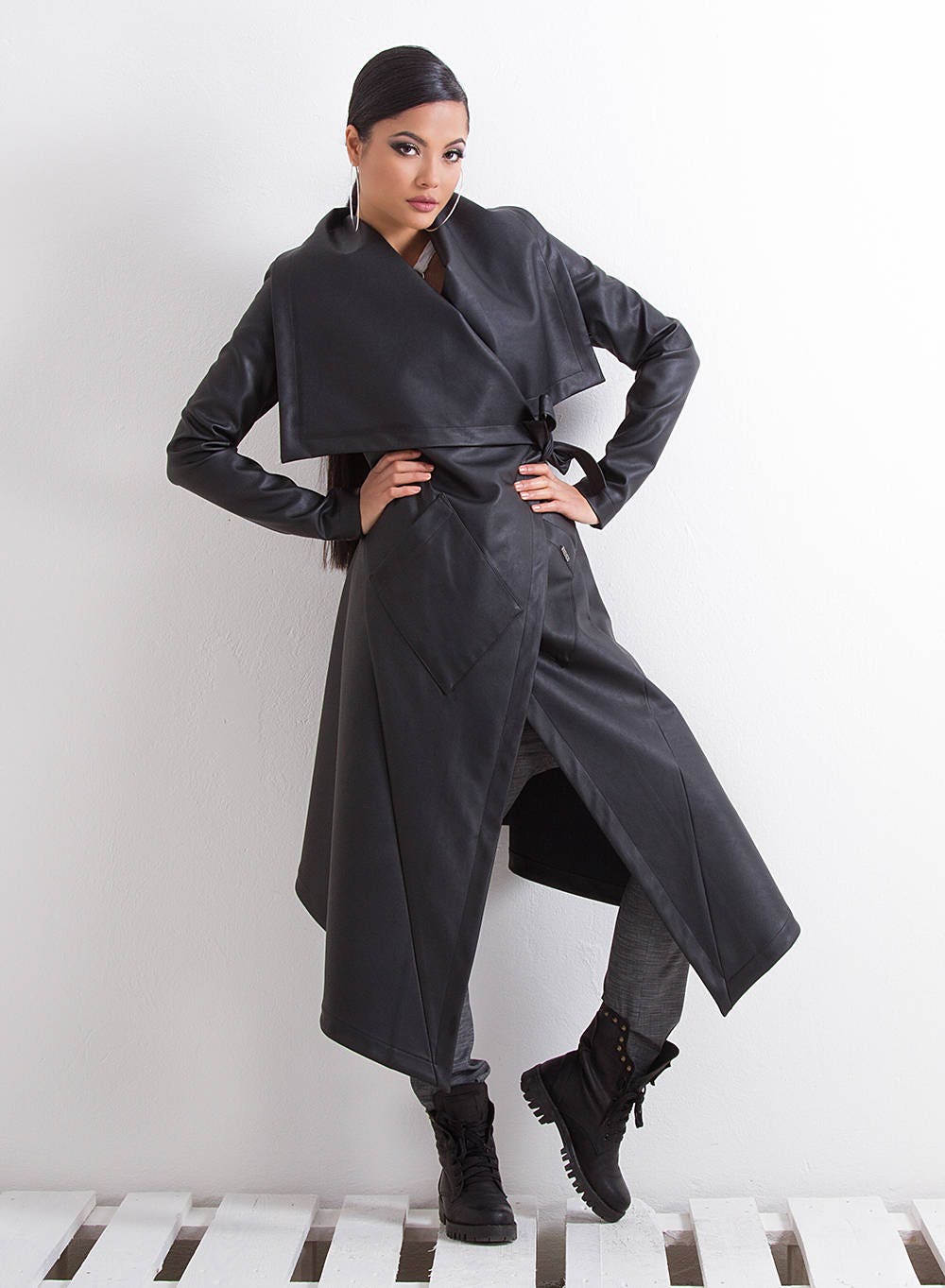Faux Leather Trench Coat, Asymmetric Jacket Coat, Utility Jacket, Long Goth Jacket, Extravagant Jacket, Spring Duster by Friends Fashion