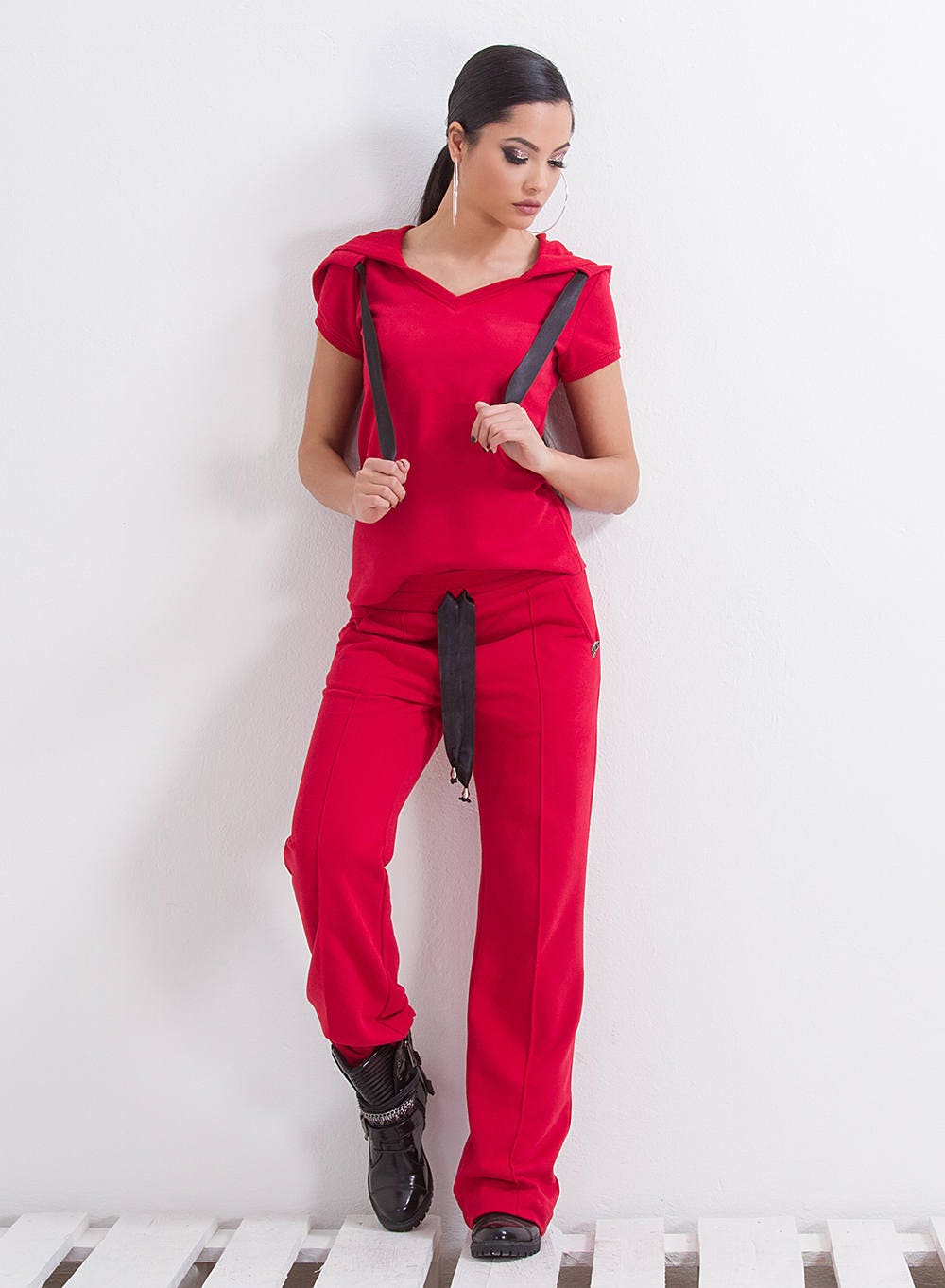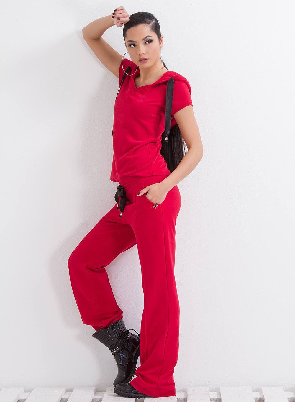 Hooded Tee & Loose Jogger Pants Set, Sports Clothing set, Woman Gym Casual Set in Red by Friends Fashion
