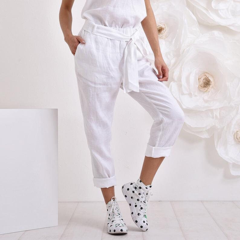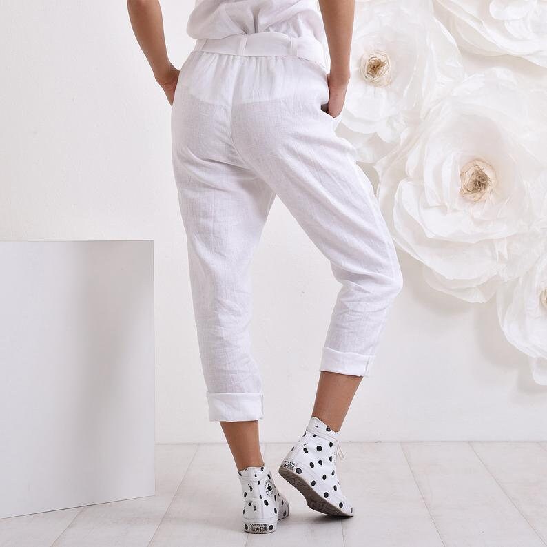 Linen Elastic Waist pants, capri Women trousers, comfy Summer Clothing by Friends Fashion