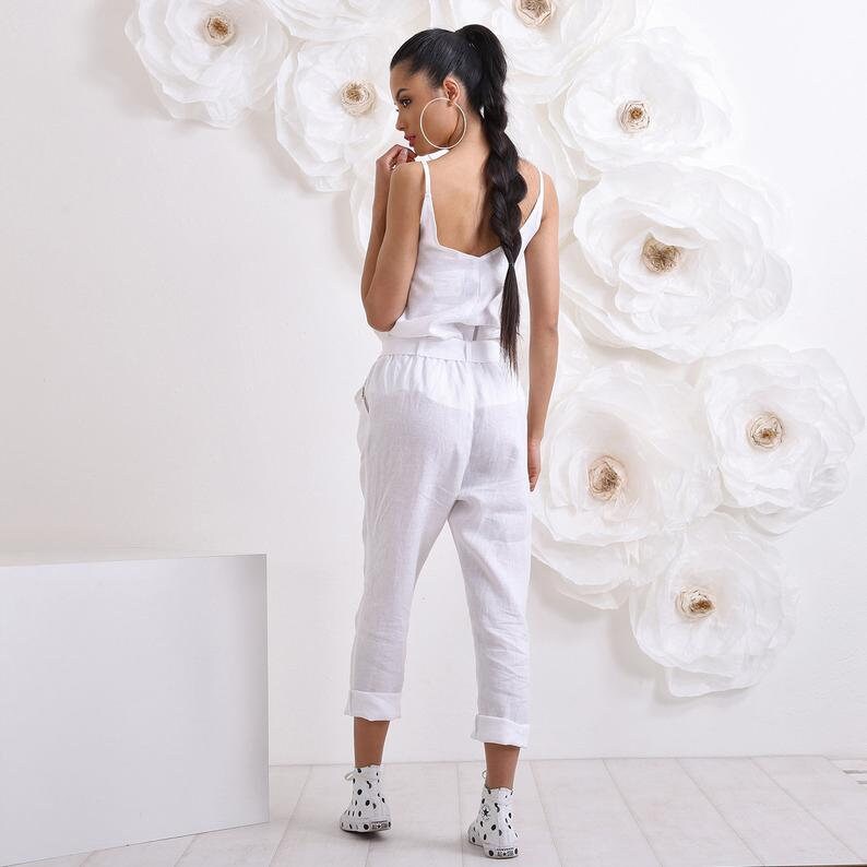 CAMEL Linen Pants made of 100% WASHED LINEN and buttons.