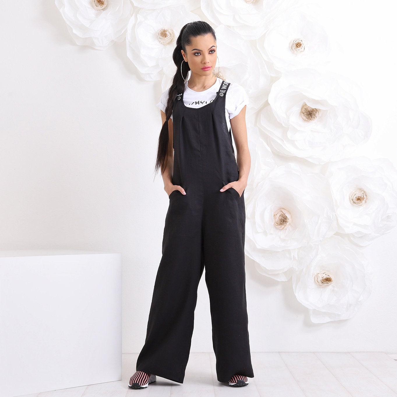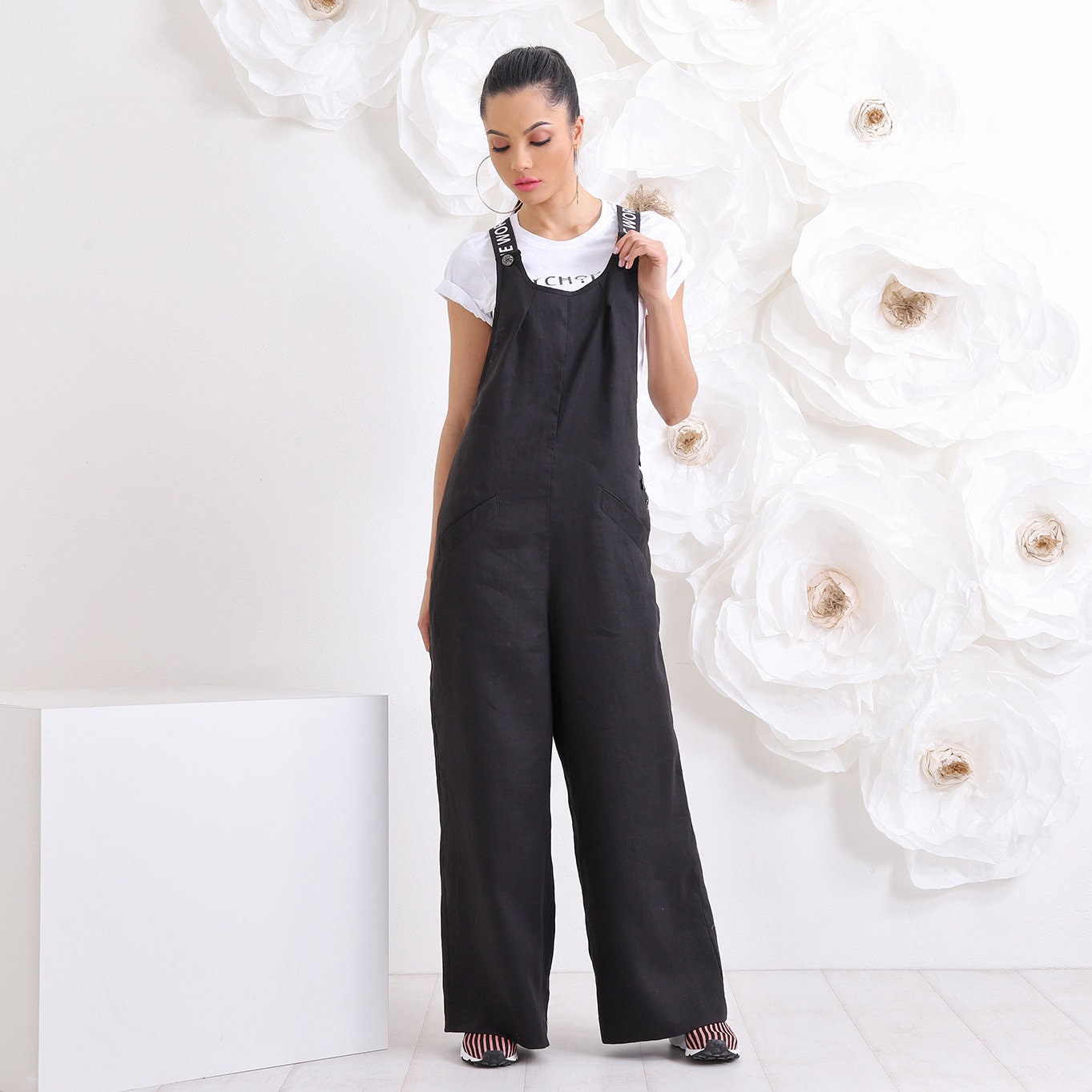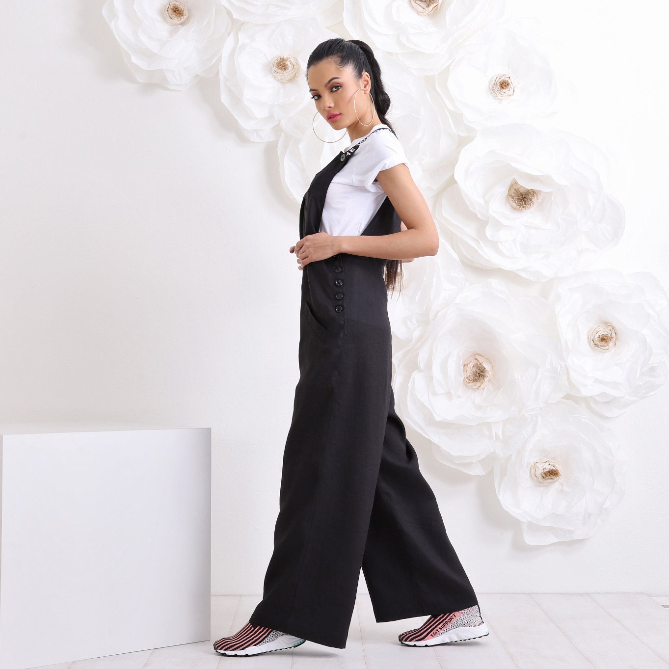 Linen Jumpsuit, Palazzo Jumpsuit, Black Harem Jumpsuit, Linen Clothing, Bussiness outfit, Bussiness woman outfit, Bussiness clothing