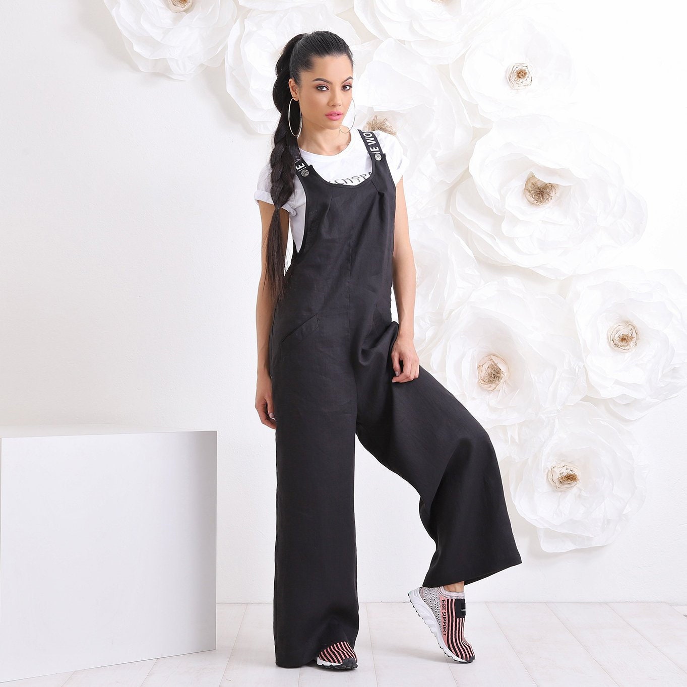Linen Jumpsuit Women, Loose Palazzo Jumpsuit, Linen Plus Size Womens Clothing