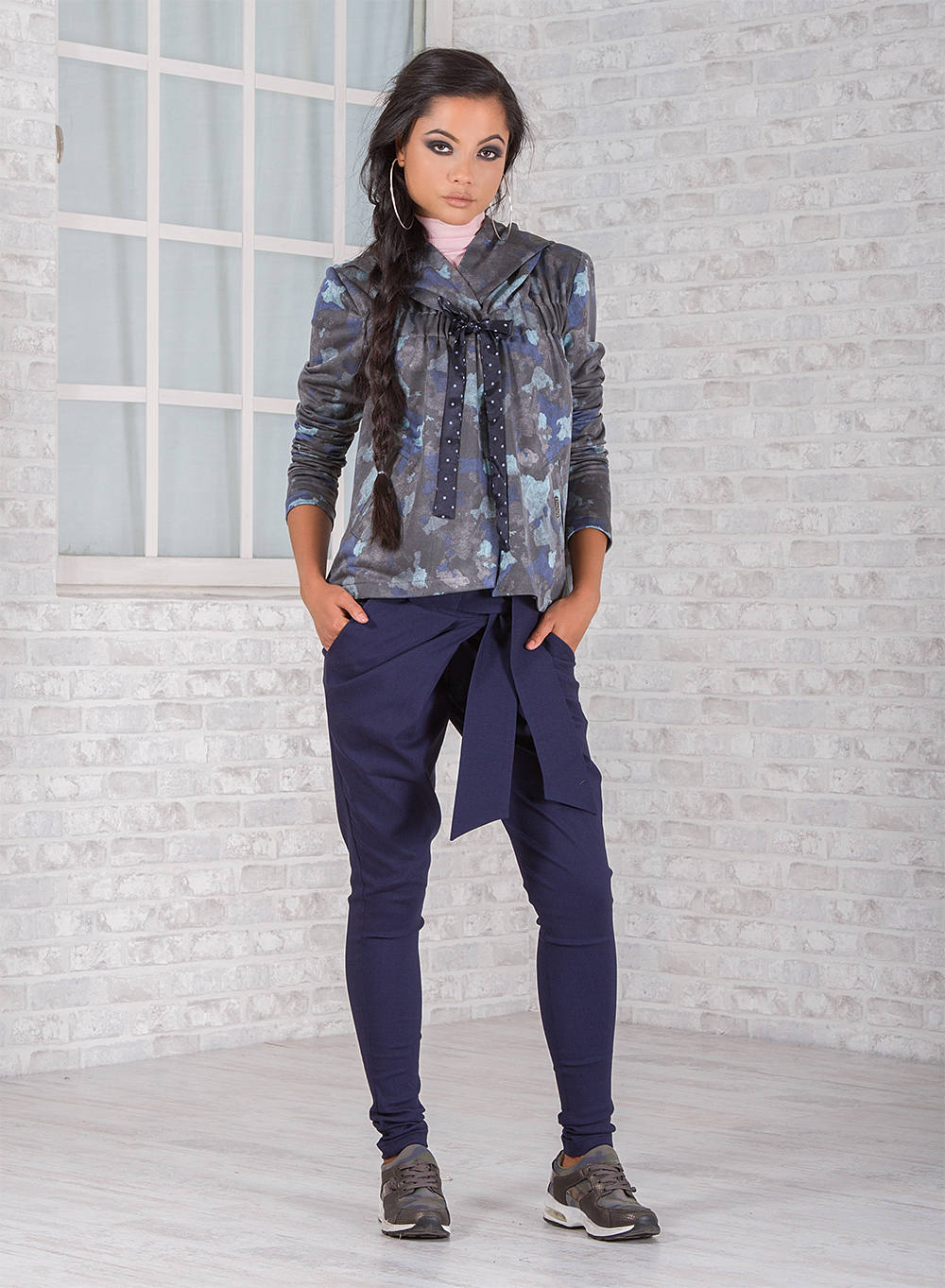 As you already know, we like making you smile π, that's why we offer you this wonderful sport- elegant jacket. It is in aquarelle print.π The jacket is made in a way, which reminds of sweatshirt. π So colorful and different! It is made of fabric with little elastic.π Very beautiful creation! π The accent is on the front part - laces, made of different fabric in color dark blue with points.β€ There are also pockets. You can wear the jacket with denim or sport- elegant skirts/ dresses. β€