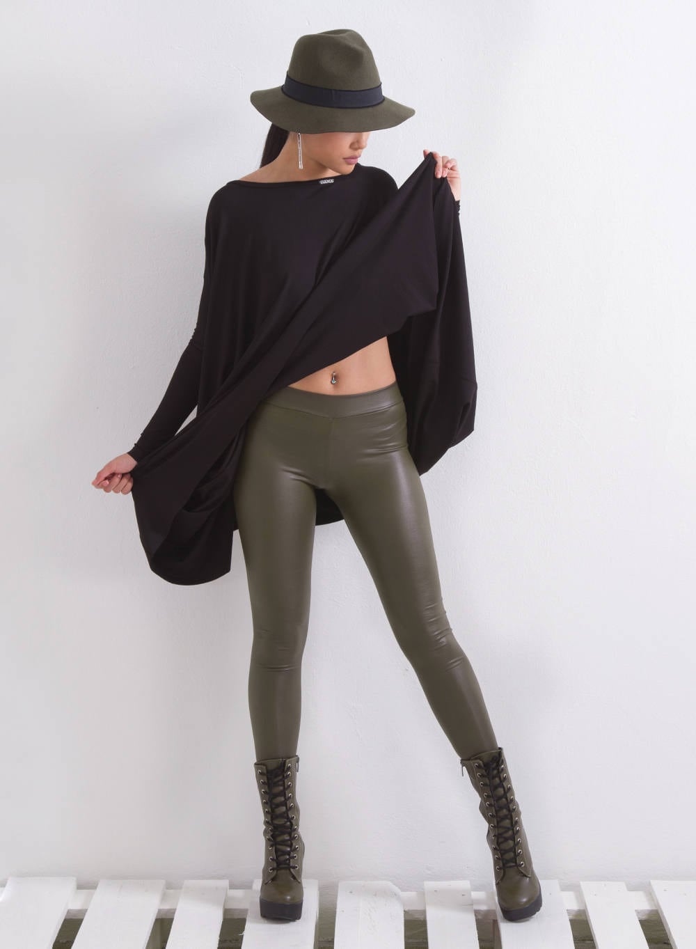 Stretch pants high waist leather leggings in military green, Faux Leather Leggings, Elastic Leggings, faux leather Tights by Friends Fashion