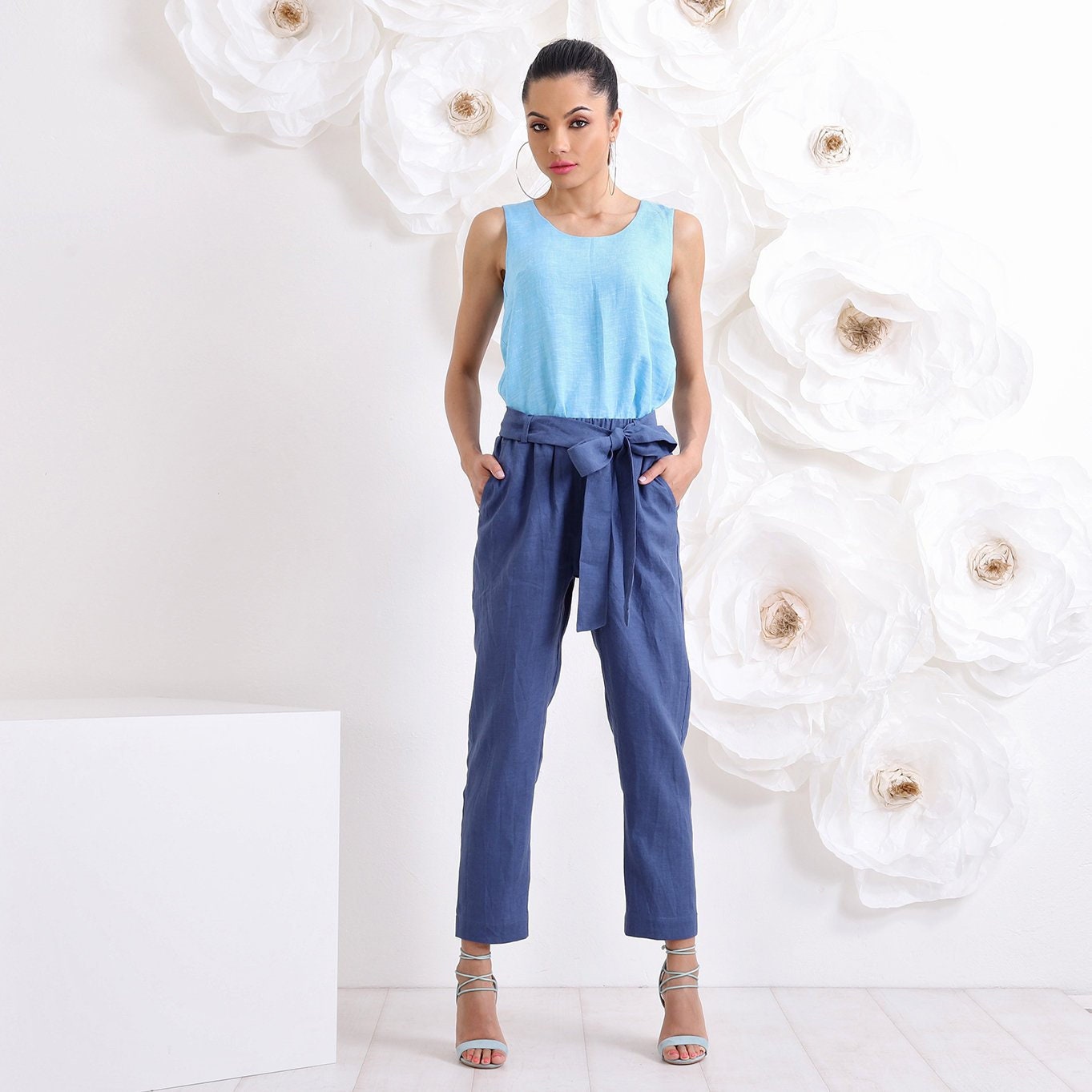 Tapered Linen Pants, Linen Trousers, Loose Pants, Womens Clothing
