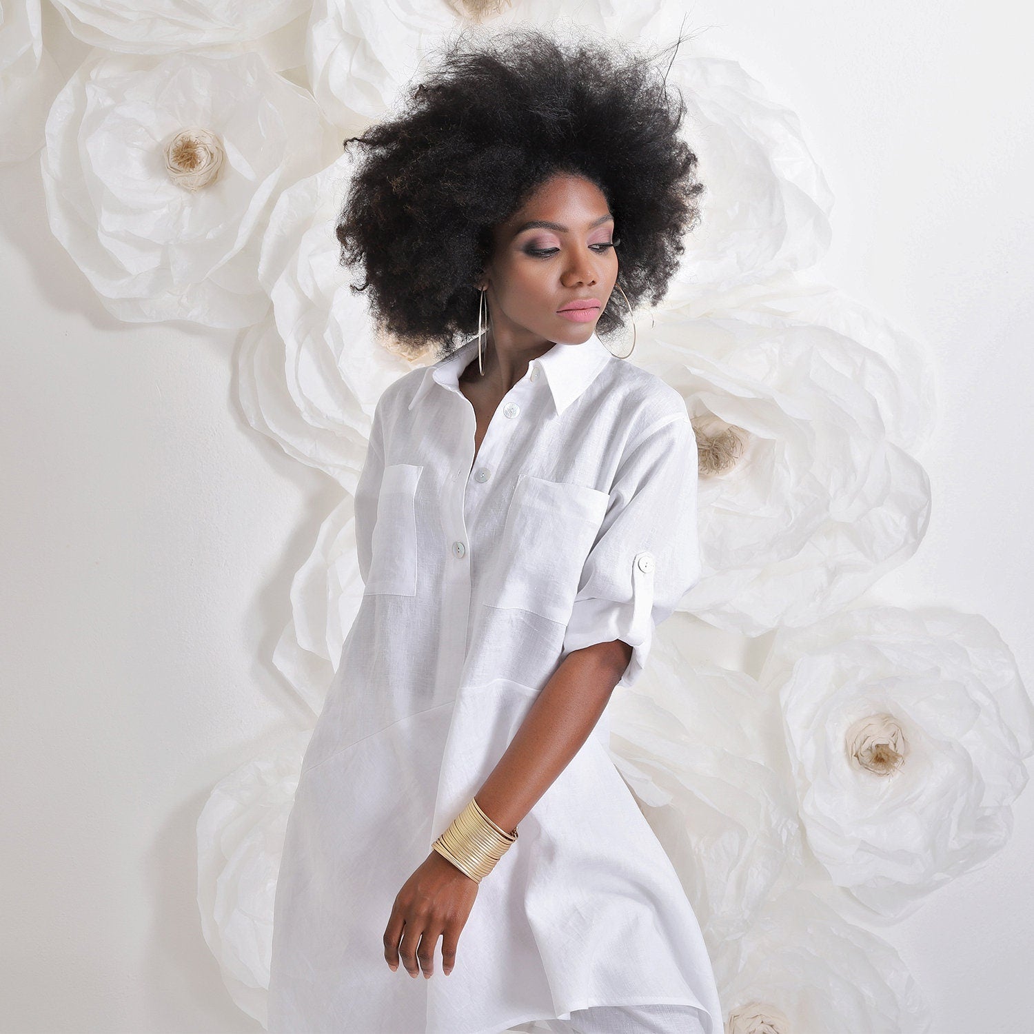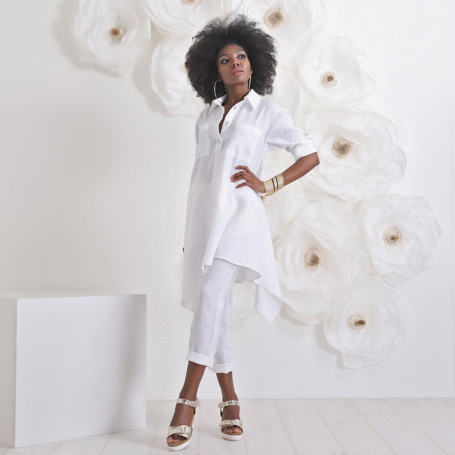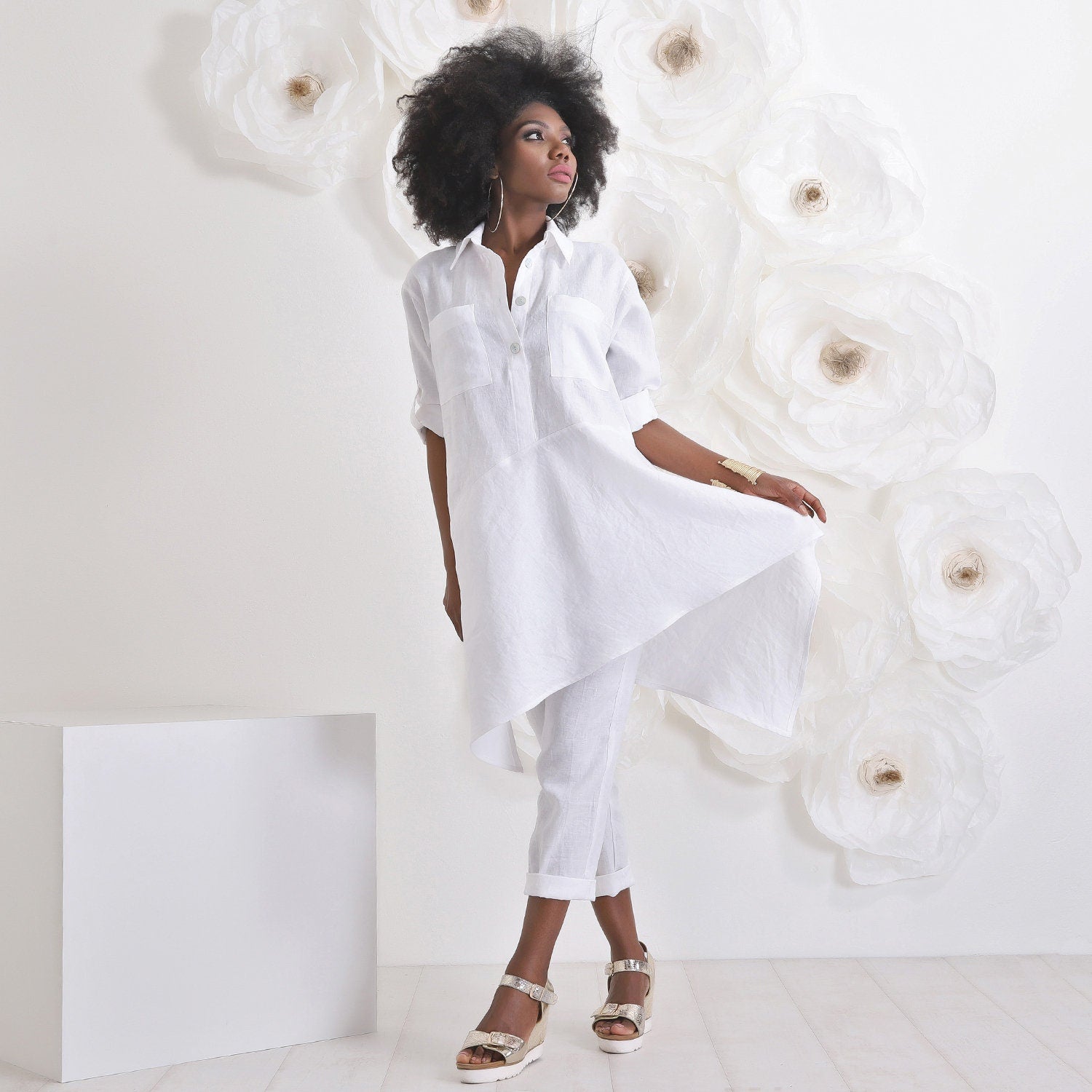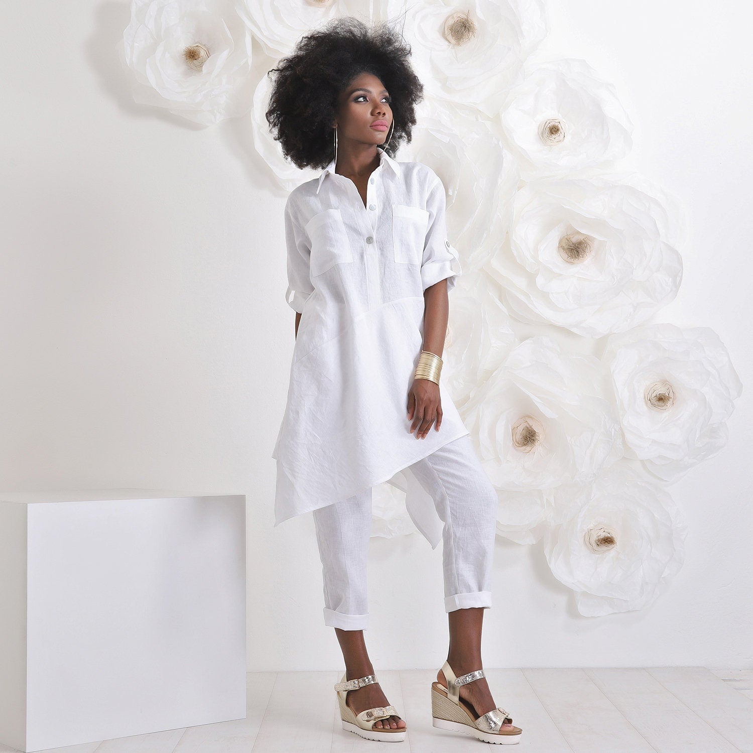 ASYMETRIC TUNIC made of 100% WASHED LINEN and buttons.