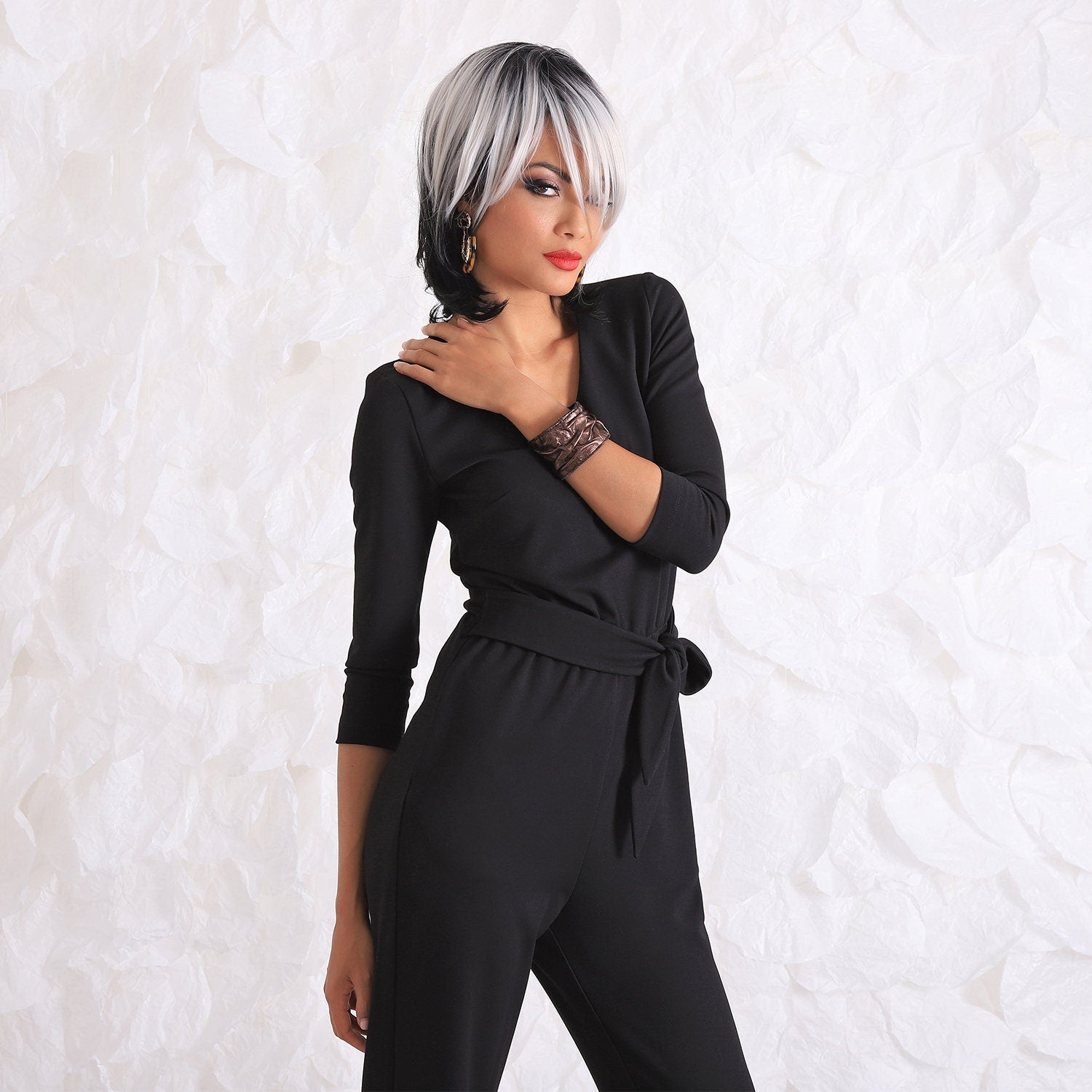 Black Womens Jumpsuit, Black Overalls Women, Harem Jumpsuit