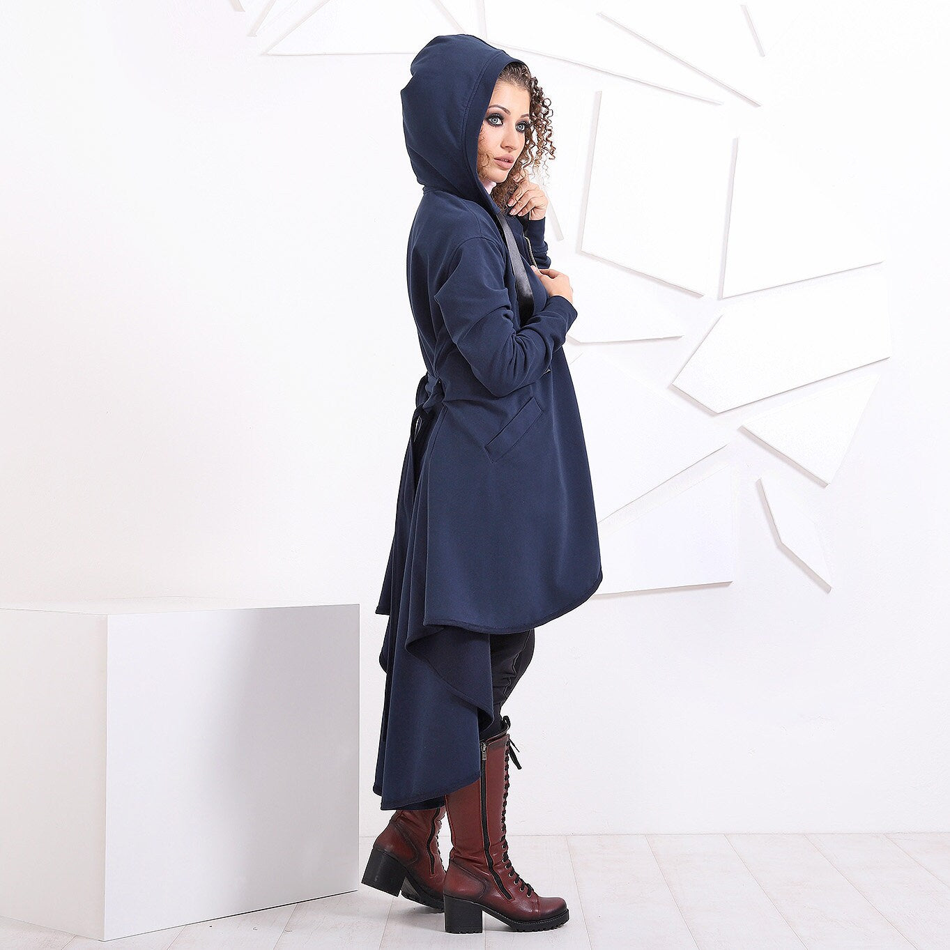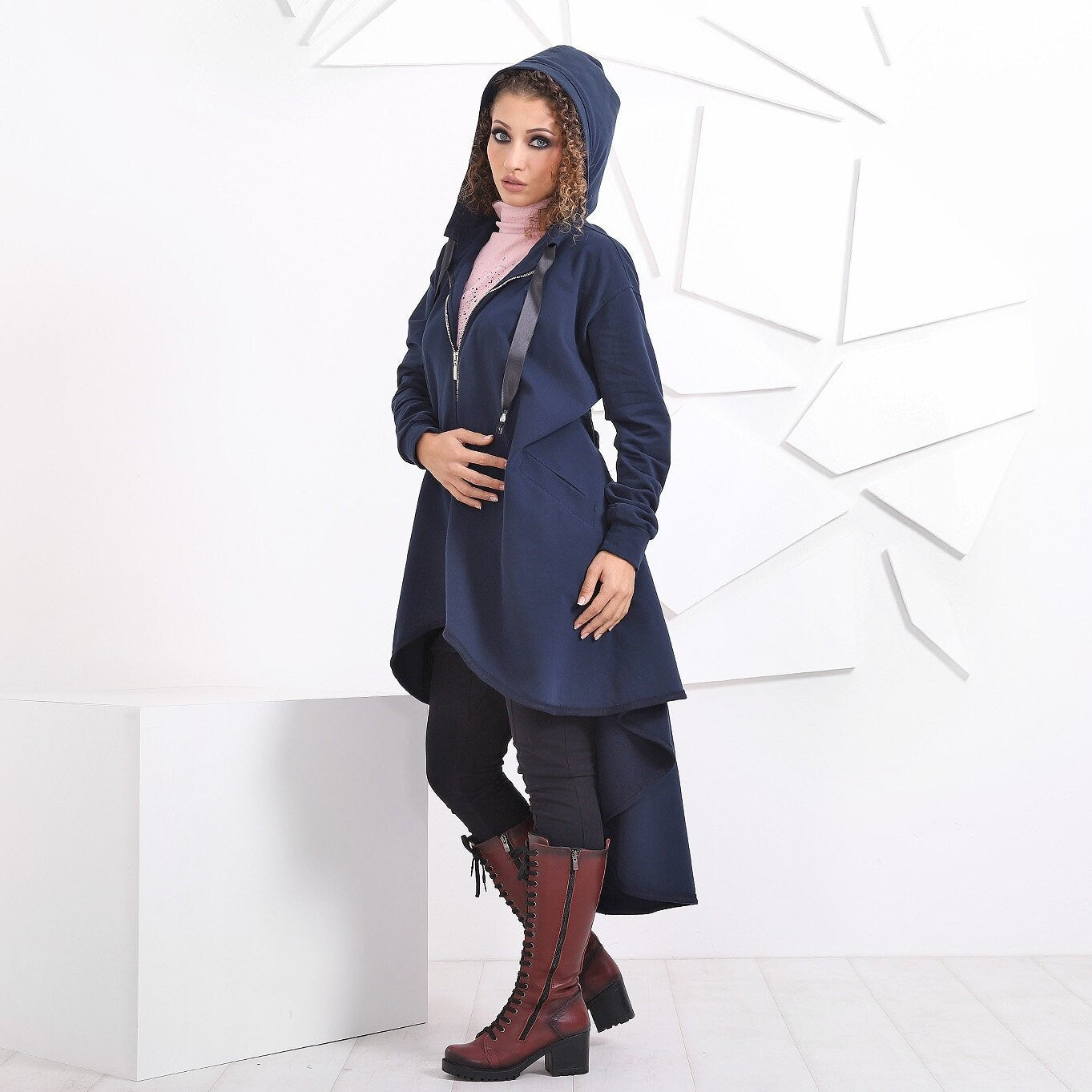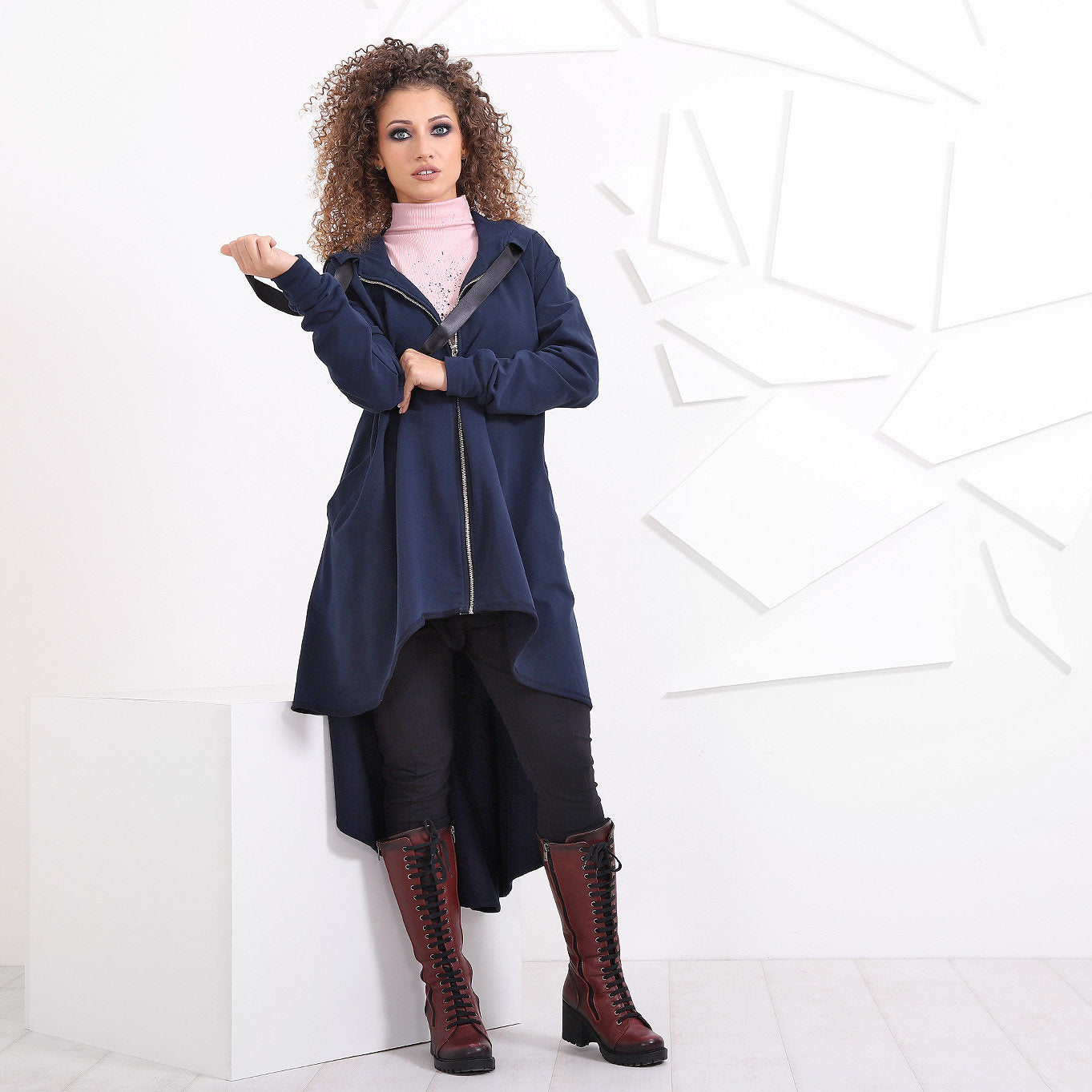 Dark Blue Hoodie/ Asymmetrical Maxi Hoodie/ Extravagant Long Sleeved Vest/ Plus Size Hoodie/ OVERSIZE Woman Top/ Loose Hoodie/ Oversize Hoodie/ Casual Hoodie/ Oversize Maxi Jacket/ Warm Hoodie/ Friends Fashion