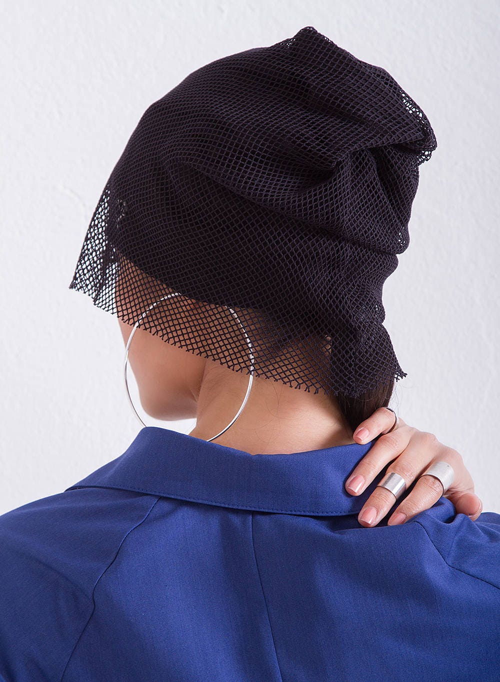 Woman Hat with Sheer Front, Extravagant Black Draped Hat, Urban Hat With Veil, Woman Accessory, Black Beanie Slouchy by Friends Fashion