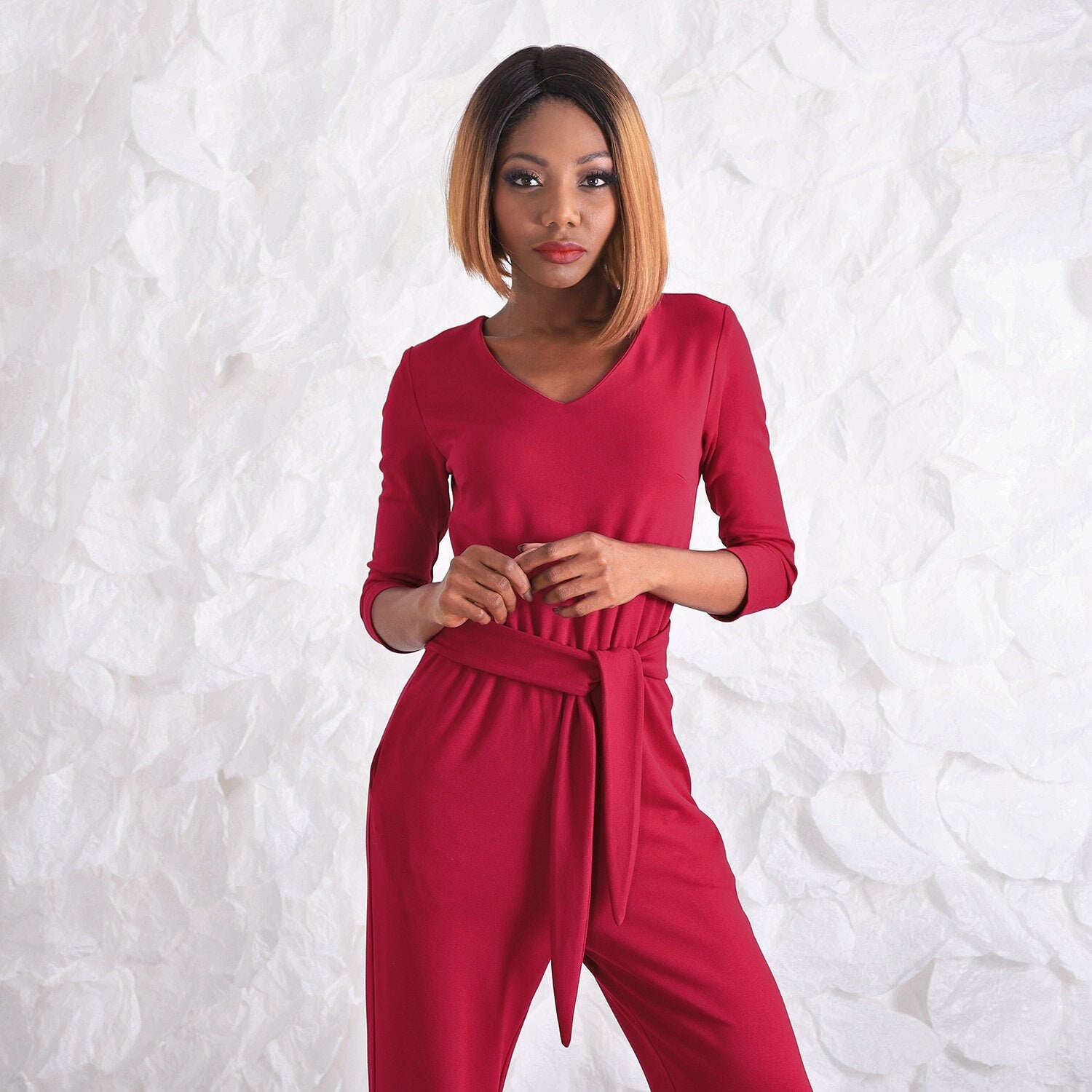 Woman Sexy Overalls, One Piece Elegant Formal Set, Red Elegant Romper, Evening Jumpsuit, Friends Fashion