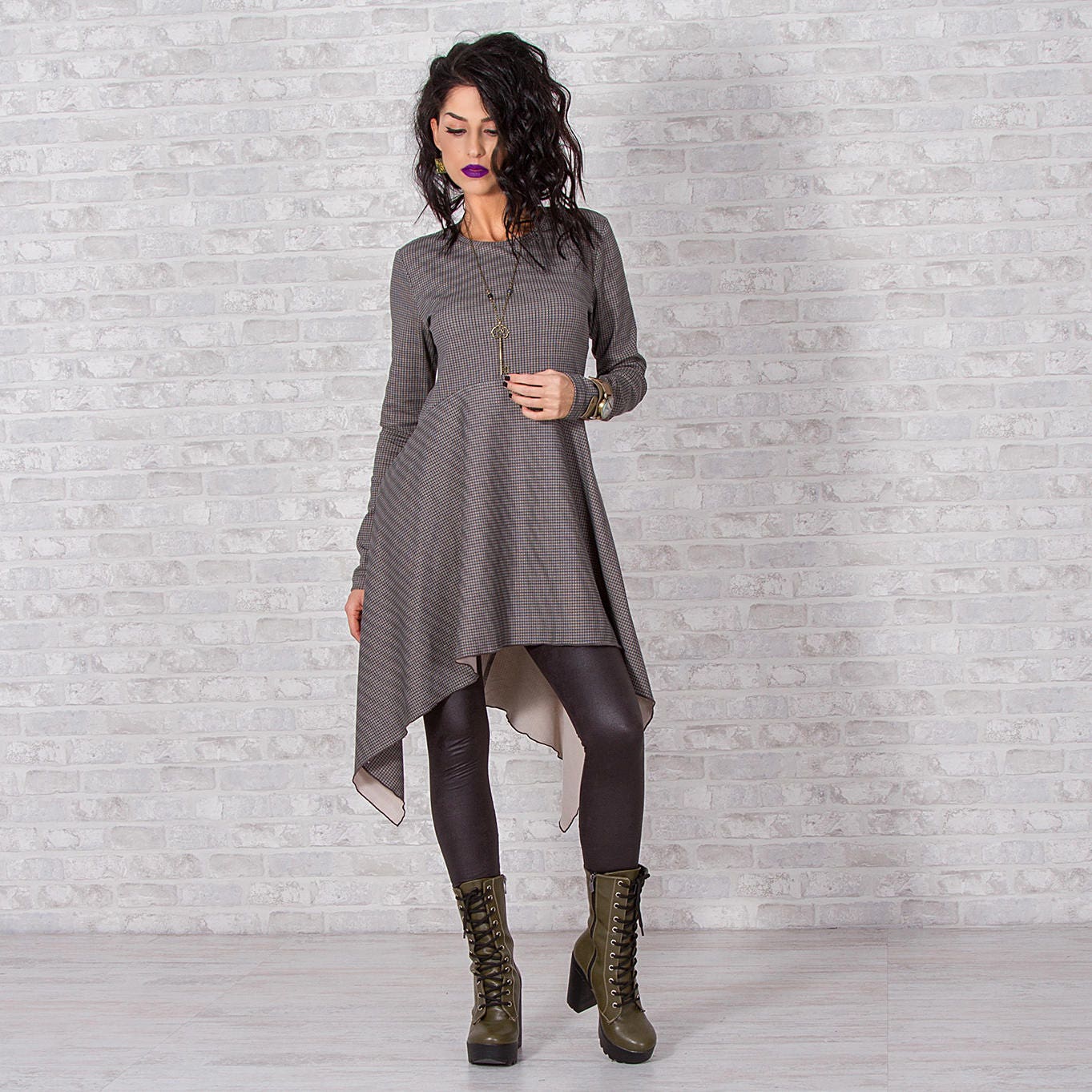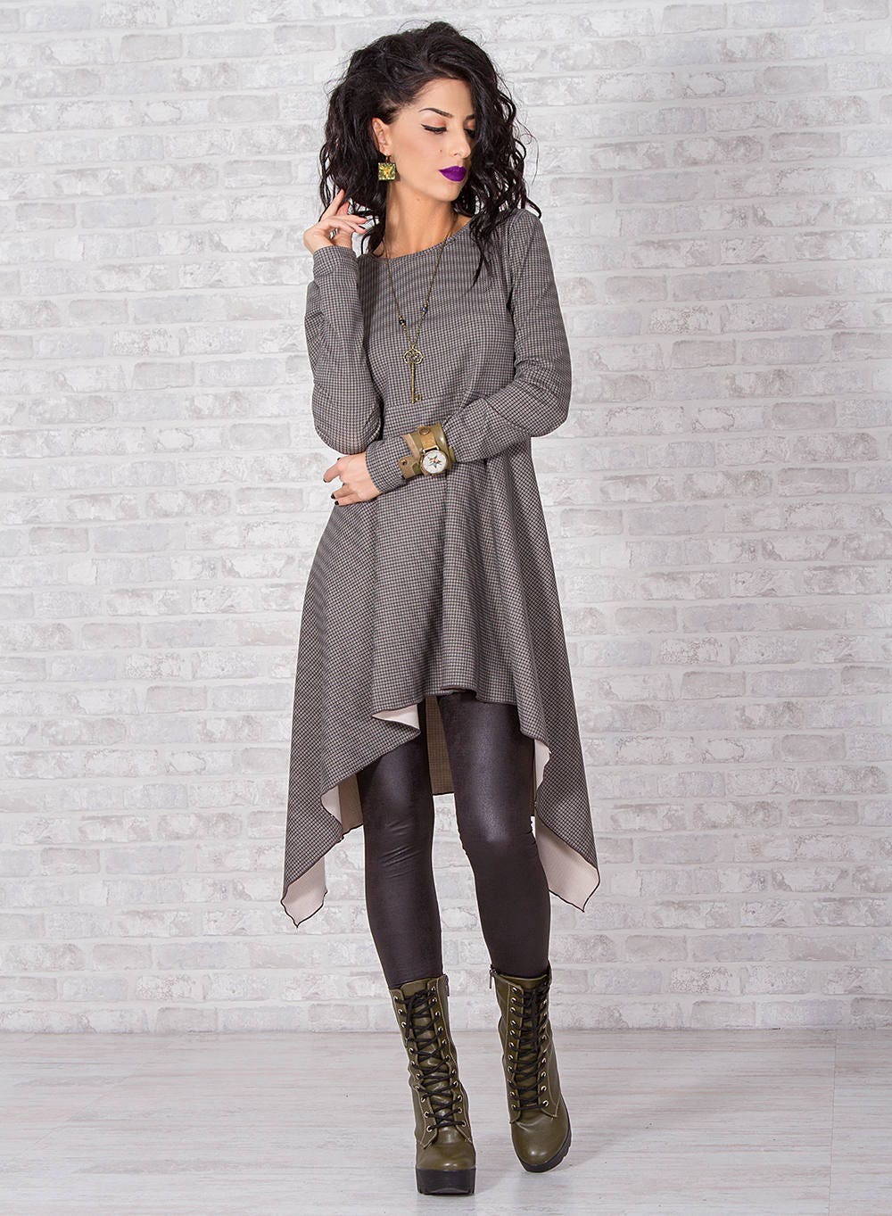 Woman Tunic, Long Sleeve Tunic Dress, Asymmetrical Tunic, Gray Melange Tunic, Elegant Cotton Tunic
